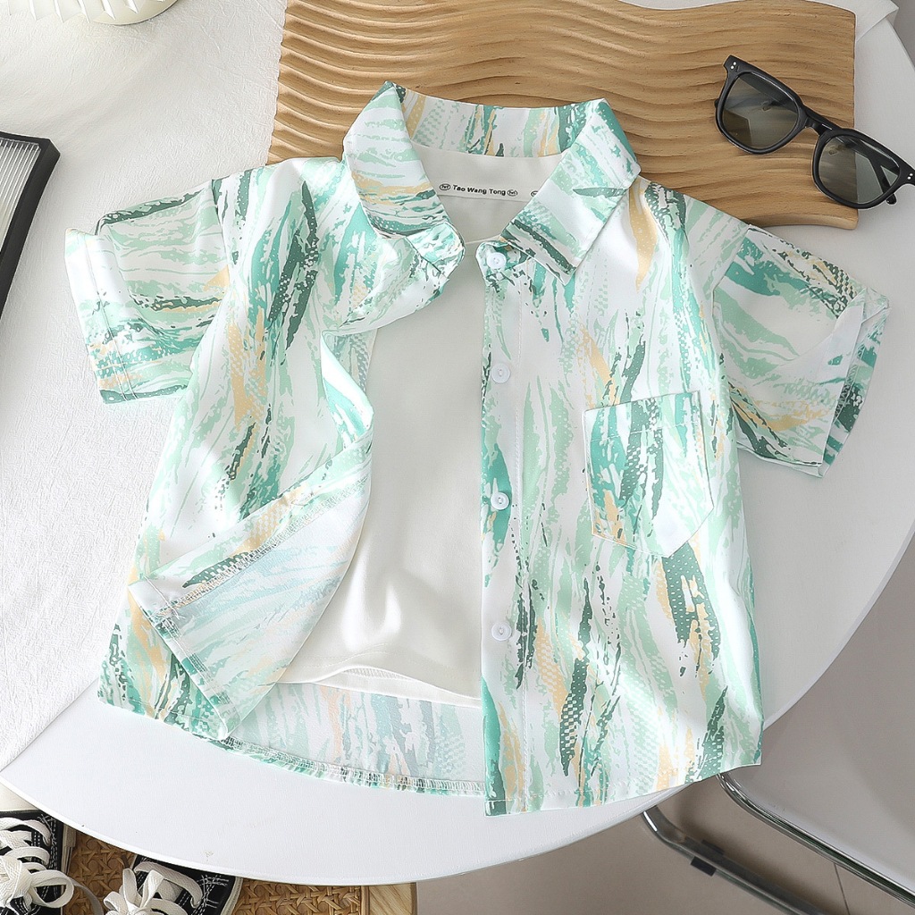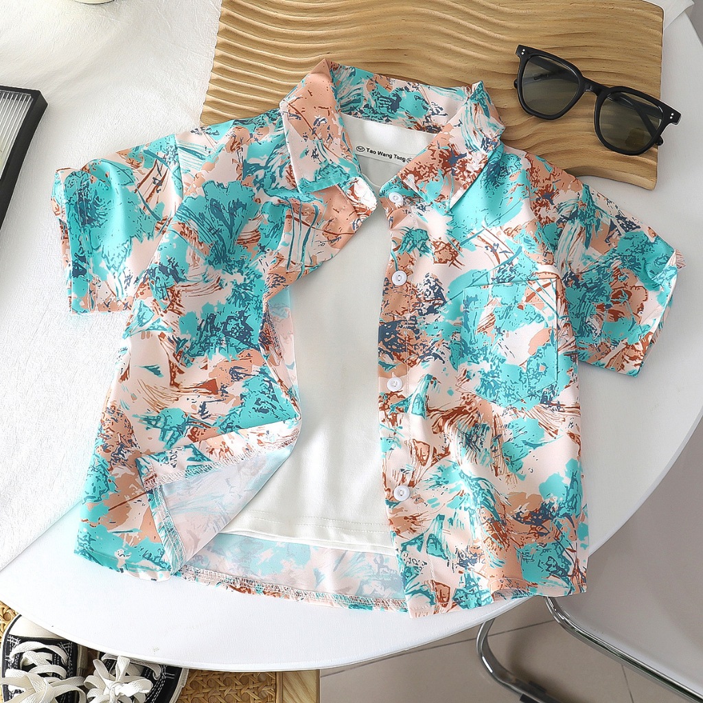 เสื้อผ้าเด็ก เสื้อฮาวายแขนสั้นเด็ก สดใสสบายตา ลายสวยๆ ผ้าบางสบาย เด็กโตใส่ได้