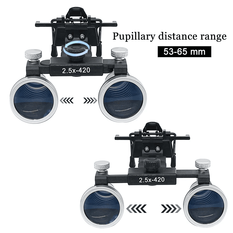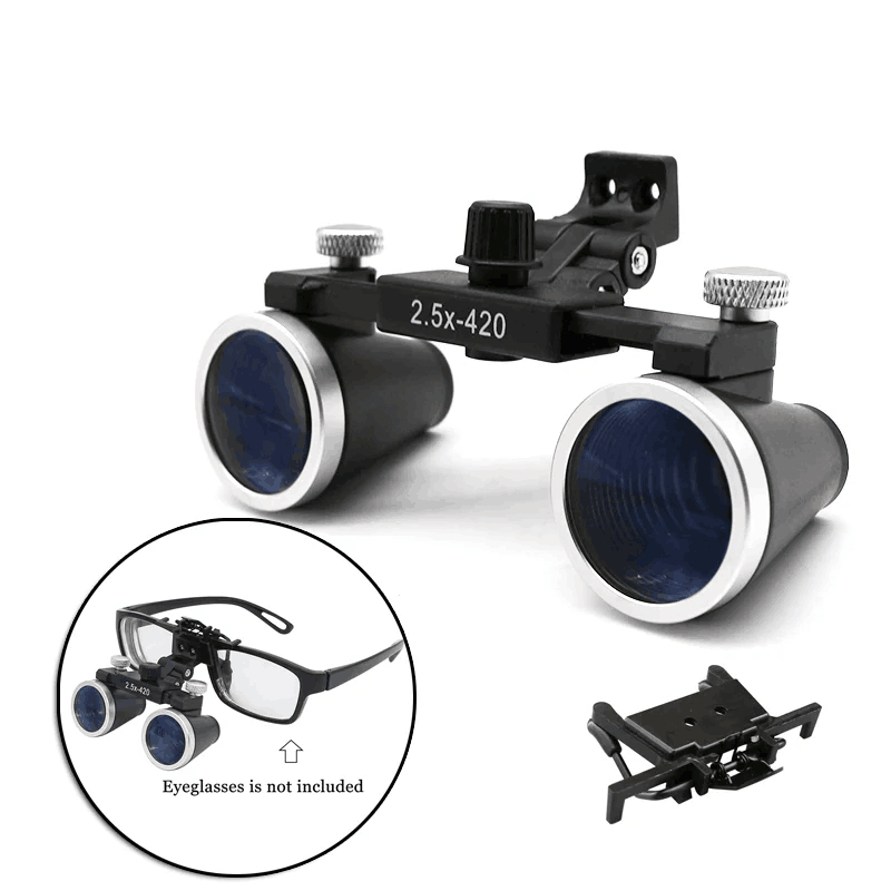 2.5x หรือ 3.5X กล้องส่องทางไกลทันตกรรม Loupes พร้อมแถบคาดศีรษะเคลือบเลนส์พร้อมคลิปแว่นขยาย Galilean ทันตกรรมแว่นขยาย