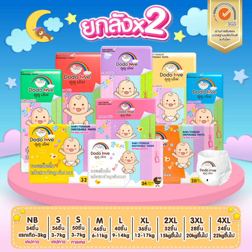 [ยกลัง 2แพ็ค] DODOLOVE Standard Soft กางเกงผ้าอ้อม ผ้าอ้อมสำเร็จรูป Size NB-4XL นุ่ม บางเบา ใส่สบาย