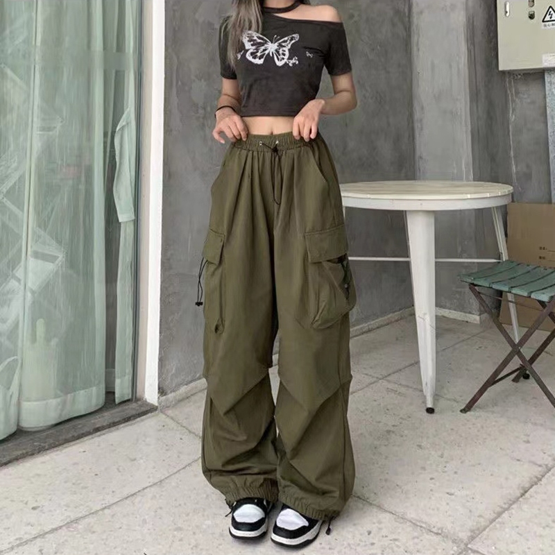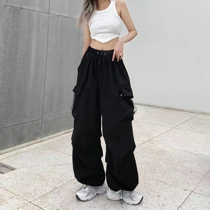 S-10XL กางเกงคาร์โก้สไตล์อเมริกัน กางเกงขากว้าง ทรงหลวม เอวปรับได้สามารถใส่ได้ทั้งผู้หญิงผู้ชาย