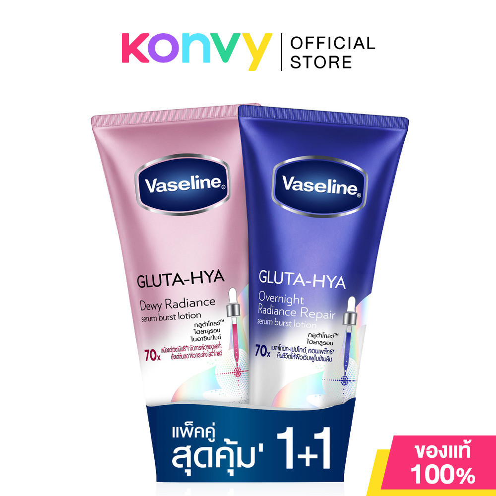 แพ็คคู่ Vaseline Healthy Bright Gluta-Hya Serum Lotion วาสลีนโลชั่น (Dewy Radiance /Flawless Glow/Sportless Glow)