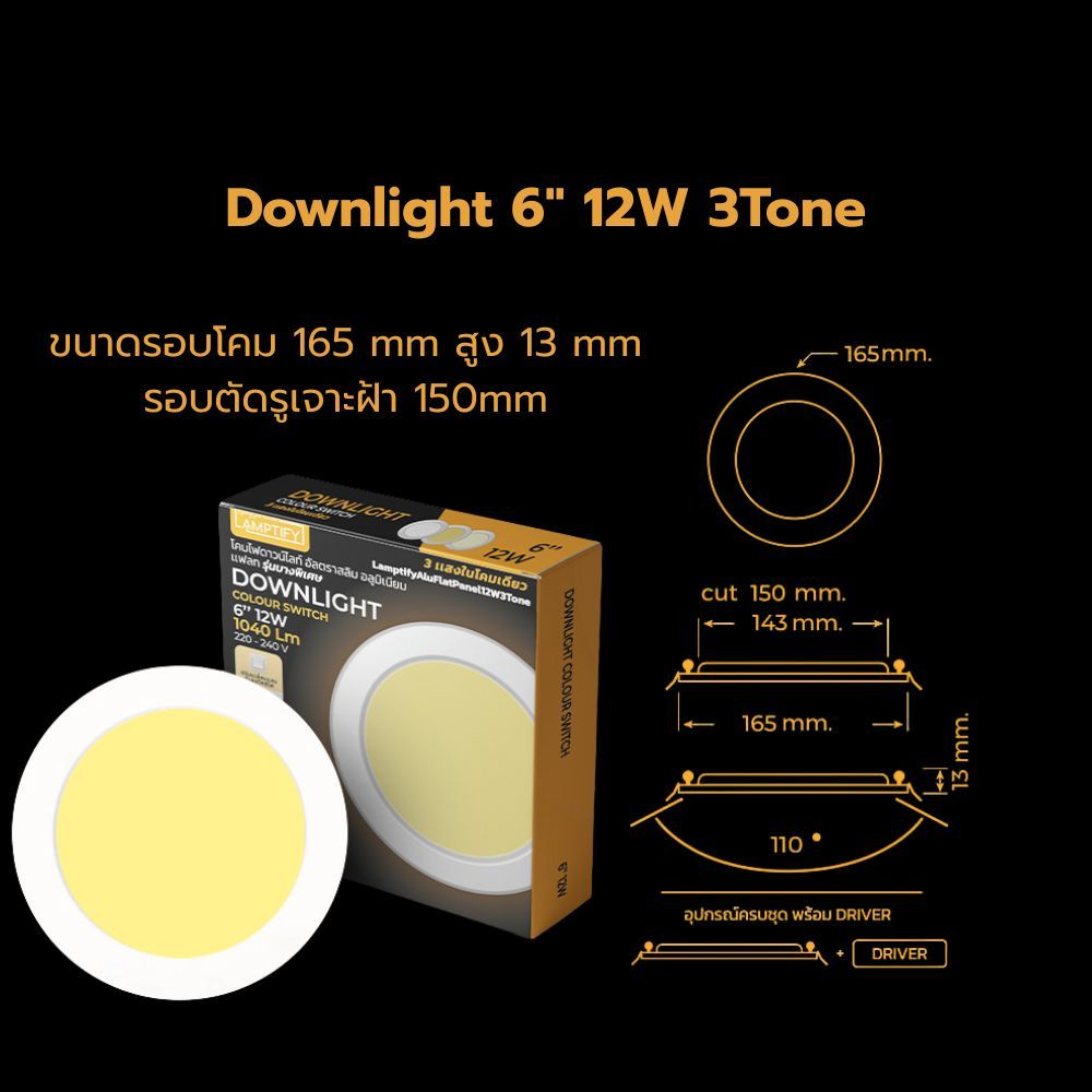 ไฟฝังฝ้า ไฟดาวน์ไลท์ Downlight Colour Switch 5 นิ้ว 9 w 3 เเสง แสงขาว แสงคูลไวท์ แสงเหลือง แบบบางพิเศษ 3 แสง 9w Lamptify