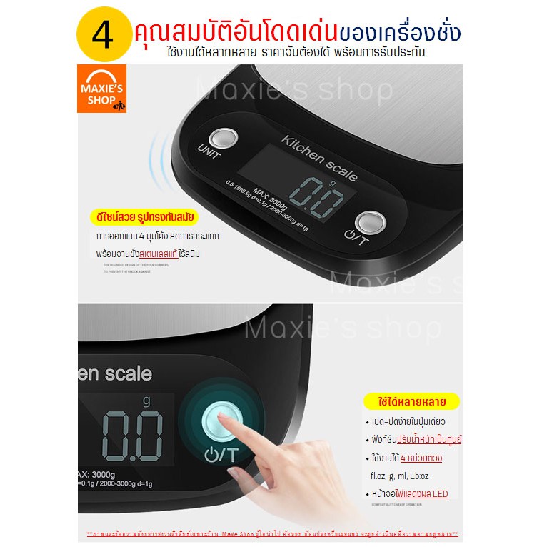 🔥ส่งฟรี🔥 เครื่องชั่งดิจิตอล แสตนเลสแท้ใหม่10กิโล/ชั่งได้4หน่วยตวง (Stainless Steel scale) ตาชั่งดิจิตอล เครื่องชั่งอาหาร