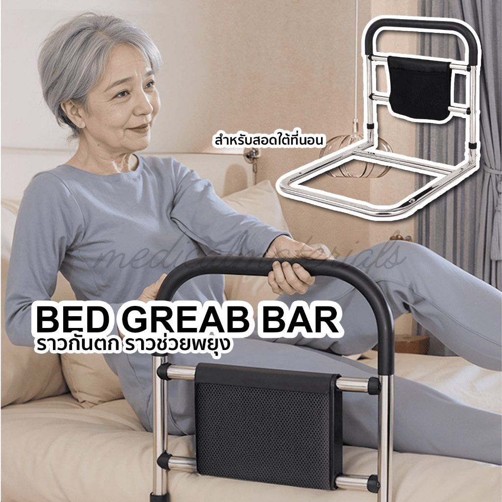 ราวกั้นเตียง ราวพยุงตัว ราวจับ สำหรับผู้ป่วย ผู้สูงอายุ หรือสตรีมีครรภ์ พร้อมกระเป๋าอเนกประสงค์ใส่ของ
