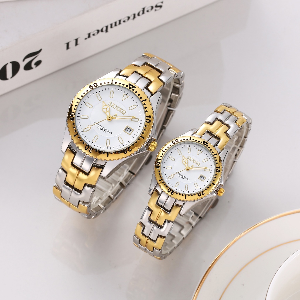 มือผู้หญิงกันน้ํา Senkq นาฬิกาข้อมือผู้ชายแฟชั่นวันที่วัสดุสแตนเลสรุ่น2231-3331