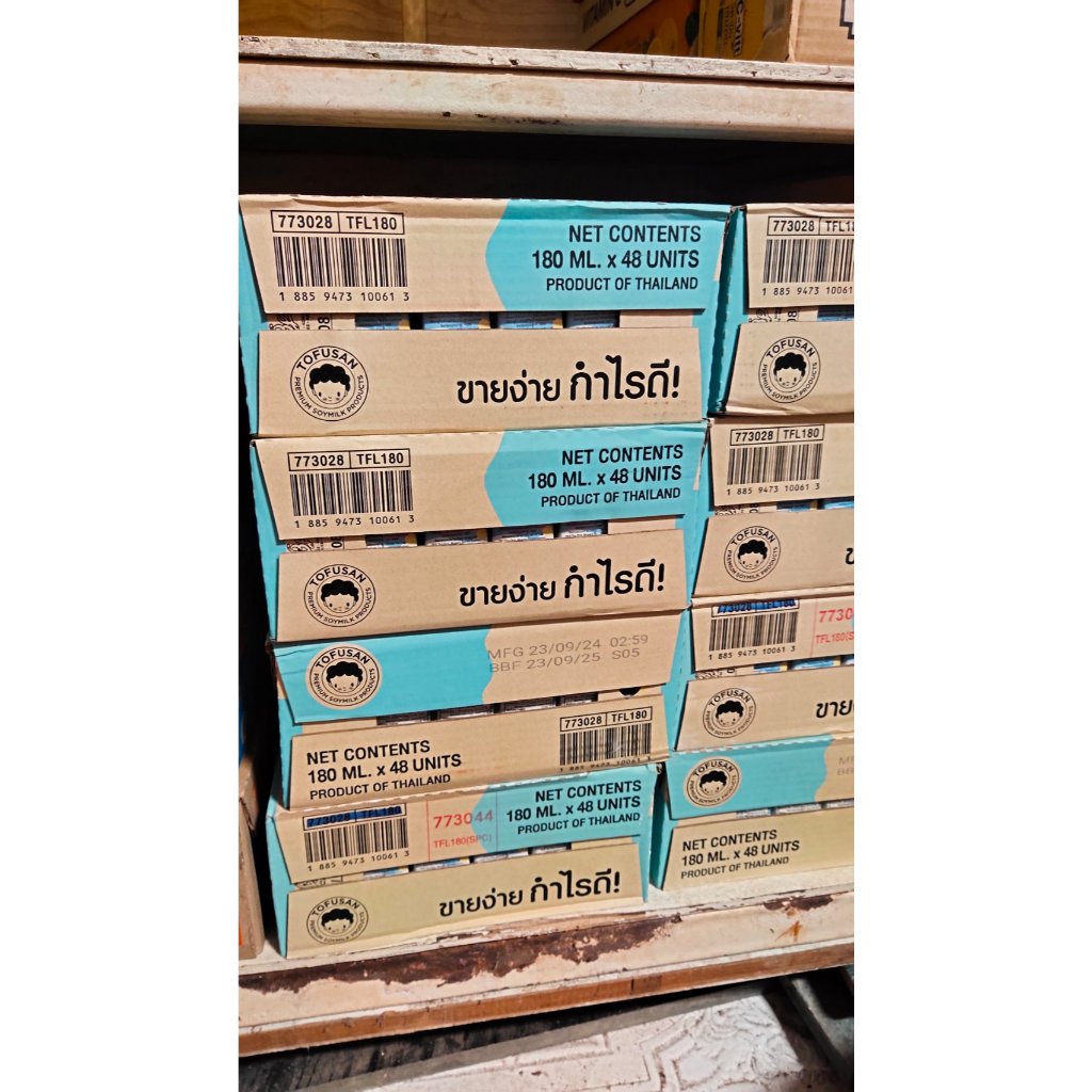 โทฟุซัง นมถั่วเหลือง UHT สูตรน้ำตาลน้อย (สีฟ้า)180 ml.ยกลังX48กล่อง