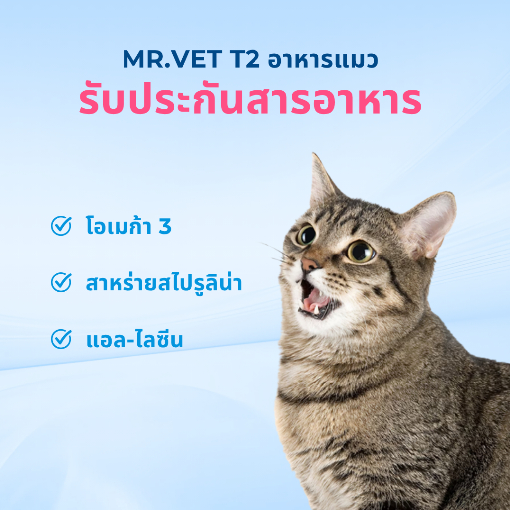 [ของขวัญเพิ่มเติม]Mr.Vet T2 1kg อาหารแมวพรีเมี่ยม Omega-3 เสริมเพื่อสุขภาพ Skin & Coat Chicken & Salmon