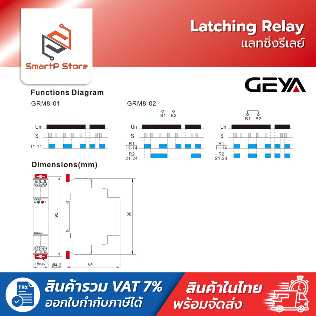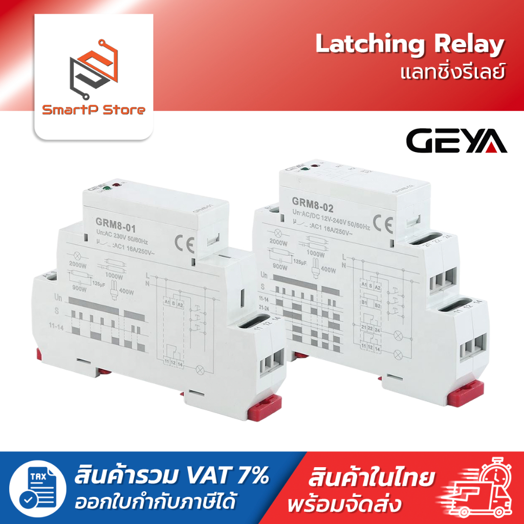 GEYA Latching Relay แลทชิ่งรีเลย์ รีเลย์สลับการทำงาน รุ่น GRM8-01 GRM8-02 AC230V 50/60Hz