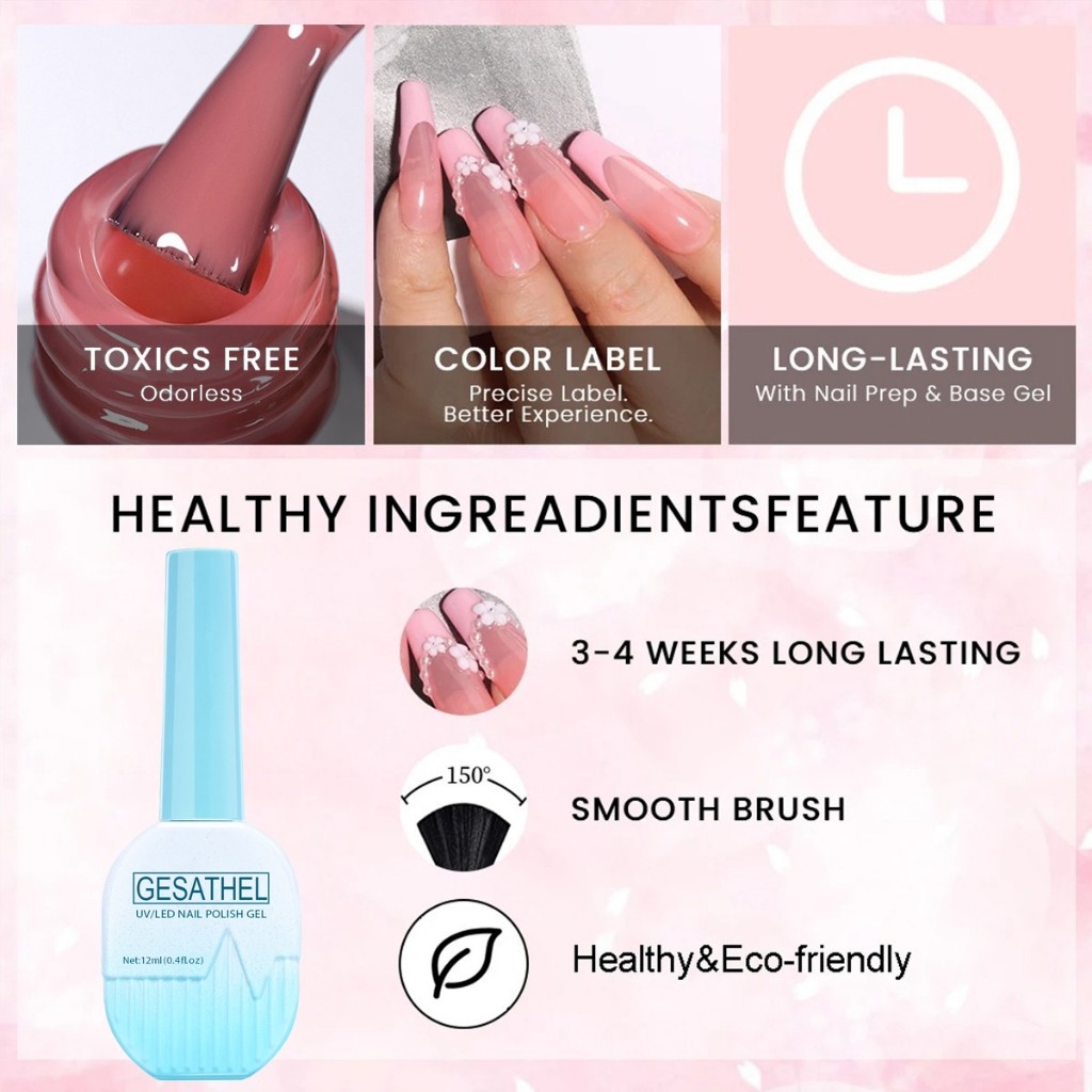 GESATHEL Gel Polish 12ML Gel Nail Polish Jelly Color Gel Polish UV Gel Nail Polish For Nail Art DIY