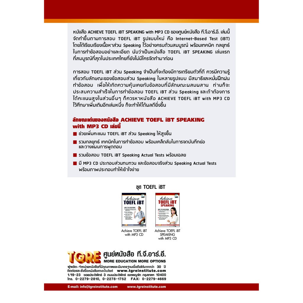 ACHIEVE TOEFL iBT SPEAKING with MP3 <พร้อม CODE MP3 อยู่ปกหลังด้านในหนังสือ>| หนังสือเตรียมสอบ ปริญญาตรี ปริญญาโท เอก