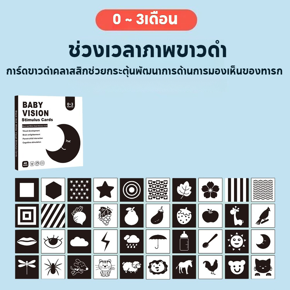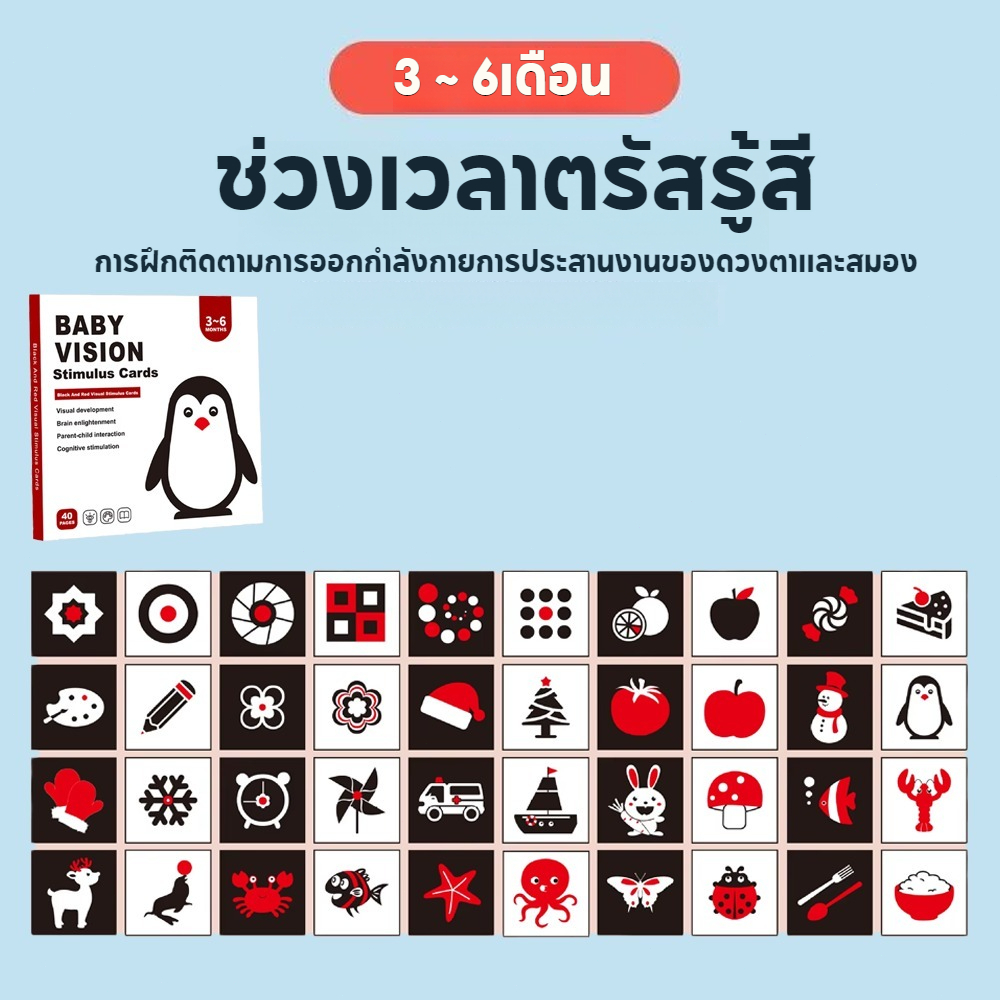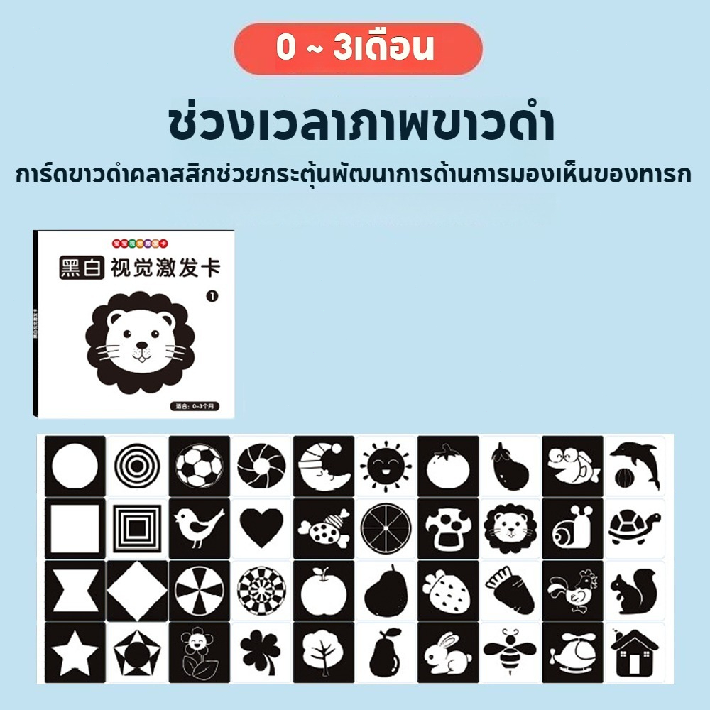 การ์ดกระตุ้นพัฒนาการทารก 0-6 เดือน การ์ดสีดำ-ขาวและสีสันสดใส สำหรับฝึกสายตาและสมาธิเด็กแรกเกิด การ์ดกระตุ้นสายตา