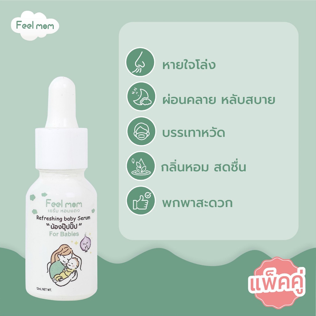 [แพ็คคู่] Feel Mom เซรั่มหอมแดง "น้องปุ๊ปปั๊ป" ช่วยหายใจโล่ง กลิ่นหอมสดชื่น หลับสบาย