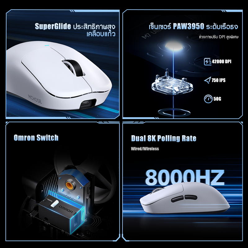 MCHOSE M7 เมาส์ไร้สาย เมาส์สําหรับเล่นเกมไร้สาย PAW3395 เมาส์สําหรับเล่นเกมขนาดใหญ่เมาส์ Tri-Mode แบบมีสาย 2.4g ไร้สายบลูทูธ