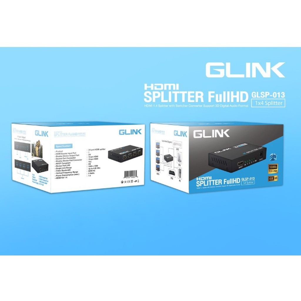 GLINK GLSP-013 4K HDMI SPLITTER GLINK 1:4 PORT FULLHD 1080P