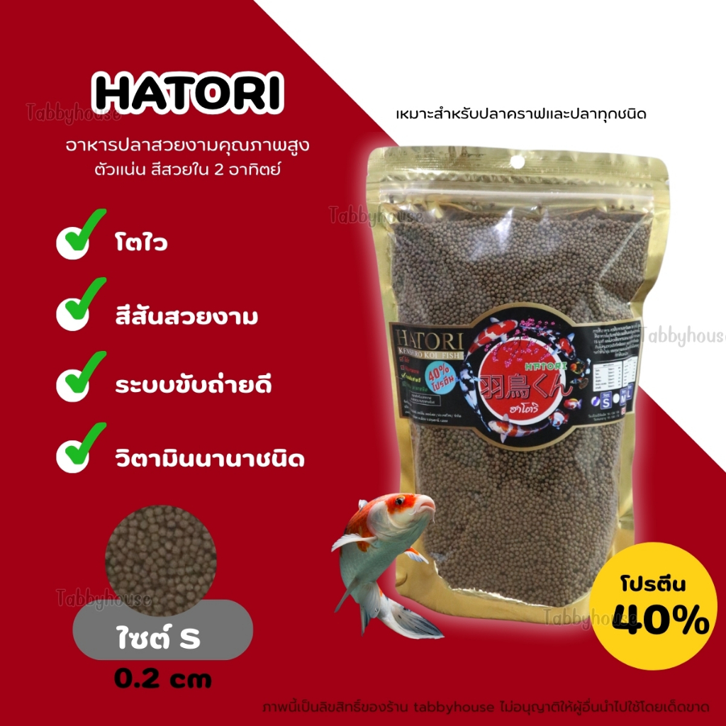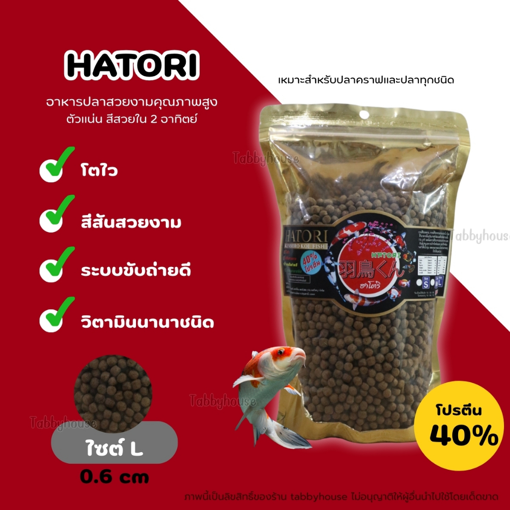 อาหารปลาฮาโตริ Hatori อาหารปลาสวยงาม สำหรับปลาคราฟ และปลาทุกชนิด โปรตีนสูง40% ช่วยให้ปลาโตไว สีสวย