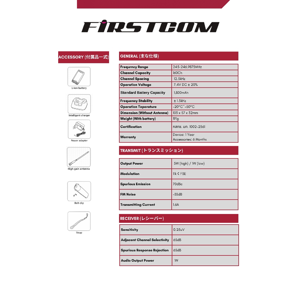 วิทยุสื่อสาร FIRSTCOM FC-168 5W ของใบอนุญาตได้ กันน้ำ IP66