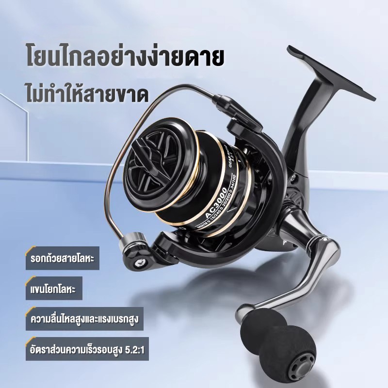 รอกสปินนิ่งตกปลา รอกตกปลา รุ่น AC2000 - 7000 หลากหลายขนาด รอกสปินนิ่ง รุ่น เกียร์โลหะมีความทนทานต่อการสึกหรอและความแข็ง
