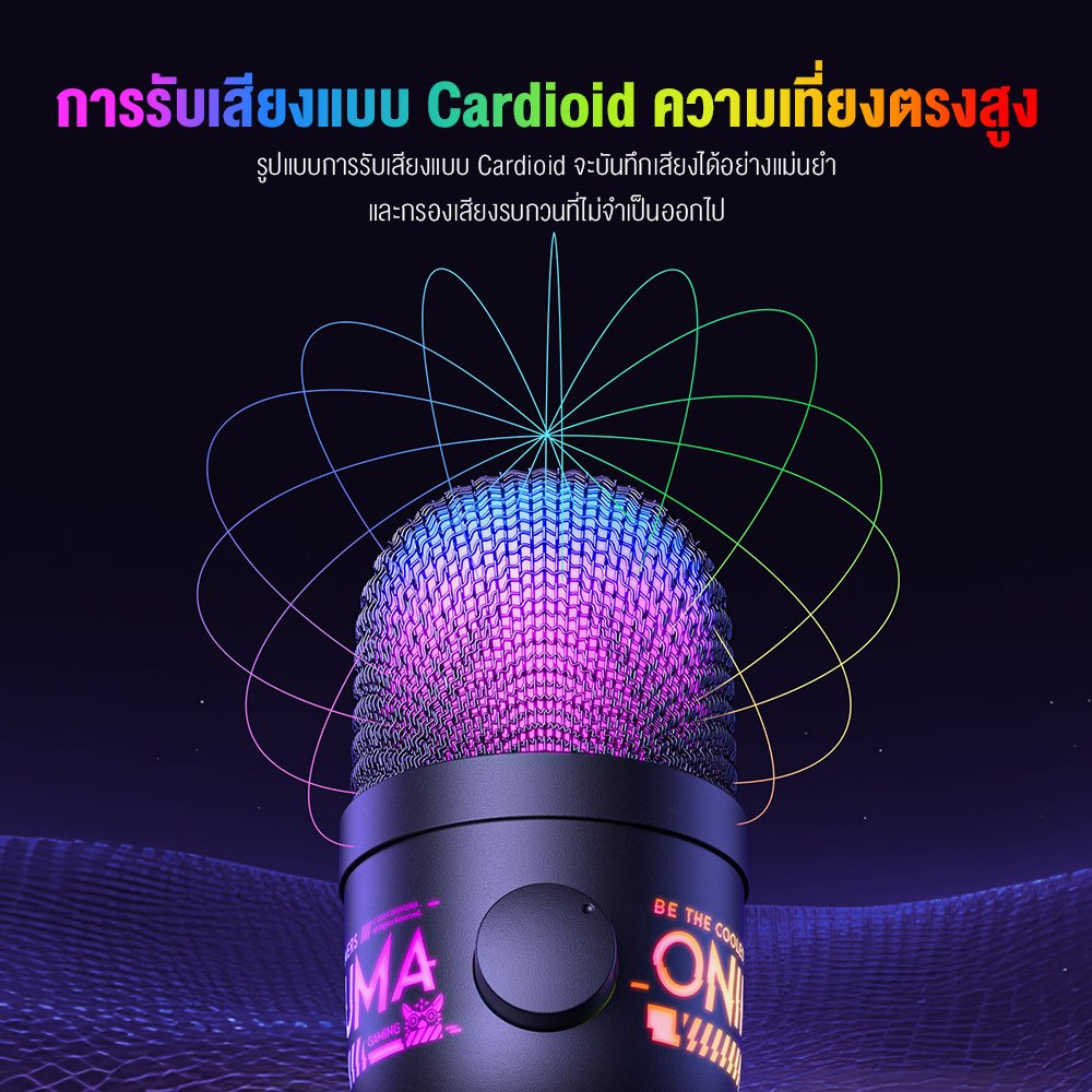 Onikuma M930 Colorful RGB Microphone ไมโครโฟนตั้งโต๊ะแบบมีสาย รับเสียงแบบ Cardioid มีไฟ RGB