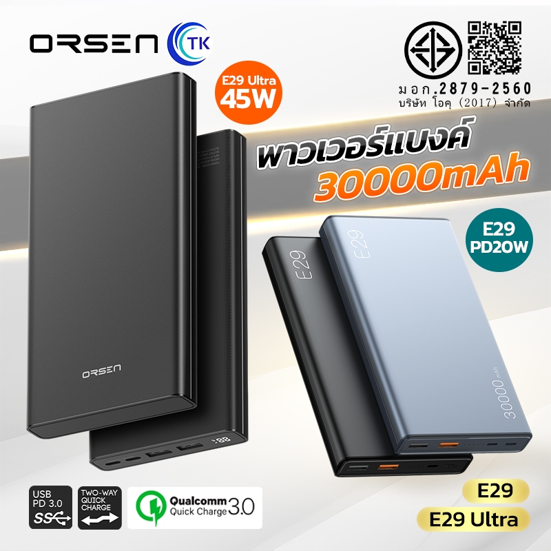 Orsen by Eloop E29/E29 Ultra แบตสำรอง 30000mAh QC3.0 PD 45W ชาร์จเร็ว PowerBank พาวเวอร์แบงค์ Type C