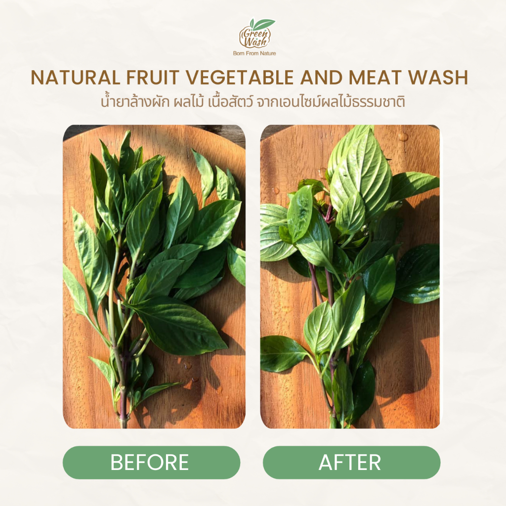 (โปรยกลัง7ถุง) GreenWash Fruit an dVegetable Wash น้ำยาล้างผักผลไม้และเนื้อสัตว์จากเอนไซม์ผลไม้ขนาดรีฟิลล์1ลิตร