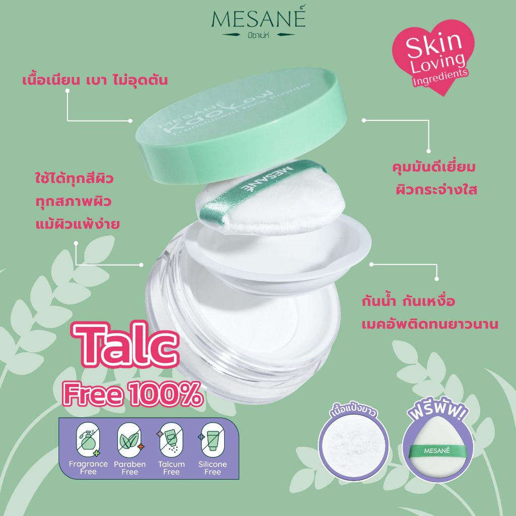 Mesane KAOKOW ข้าวขาว แป้งสกินแคร์ Talc-Free 100% ควบคุมความมัน เซ็ตผิว เบลอรูขุมขน Day&Night