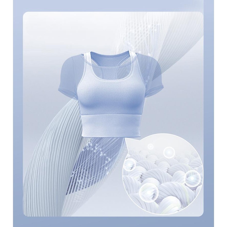 mvp sport ชุดกีฬาแขนสั้นผู้หญิง เสื้อโยคะ เสื้อกีฬา ผ้าตาข่าย แผ่นรองหน้าอกโฟมแบบเย็บติด