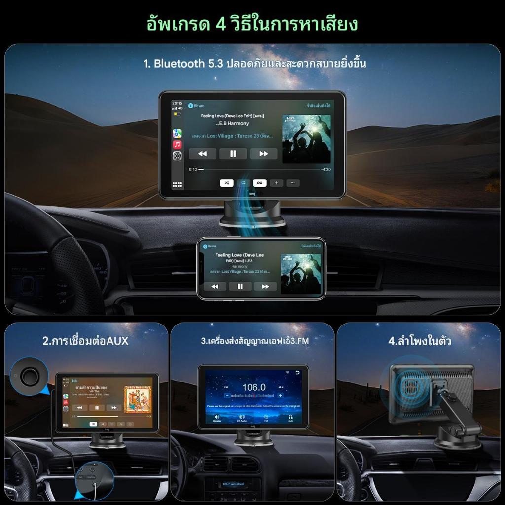 Wireless Carplay เครื่องเล่นมัลติมีเดีย FHD 7 INCH เครื่องเล่นในรถยนต์แบบพกพา Android-Auto บลูทูธ IPS 2.5D หน้าจอสัมผัสวิทยุติดรถยนต์