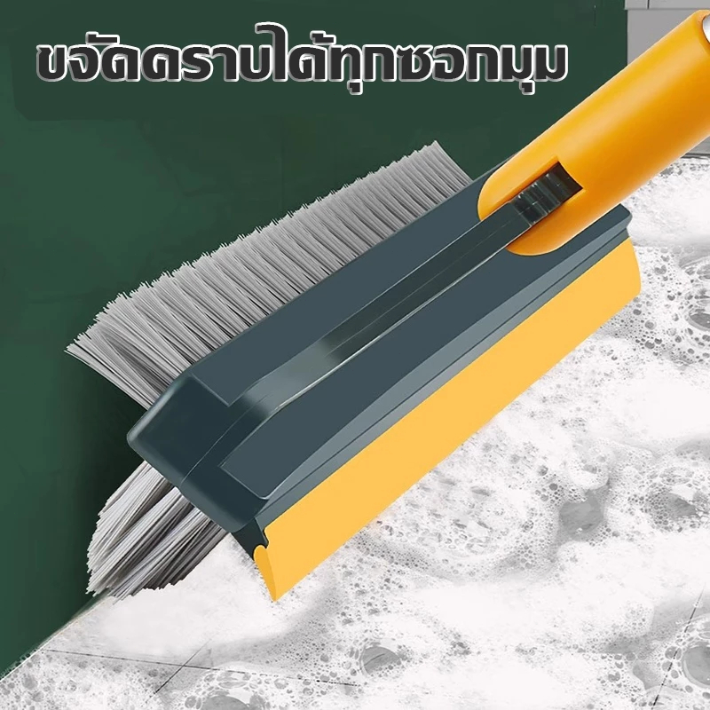 แปรงขัดพื้น แปรงถูพื้น 3in1 ขัดพื้นซอกเล็กแคบ พร้อมยางปาดน้ำไล่น้ำ ด้ามยาวแข็งแรงทนทาน หมุนได้ 180 องศา ขนแปรงแข็งแรง