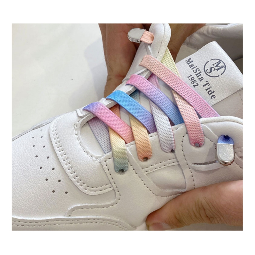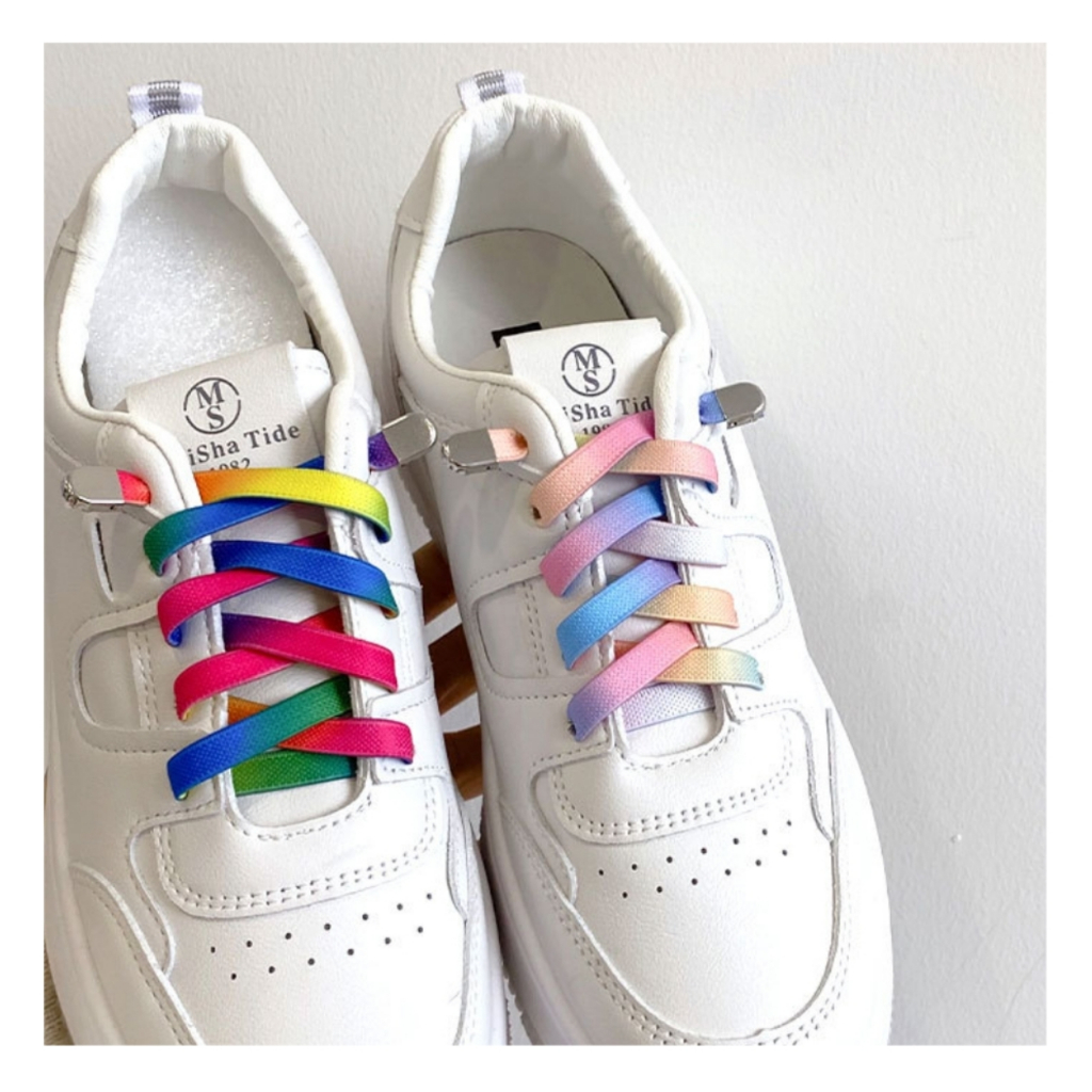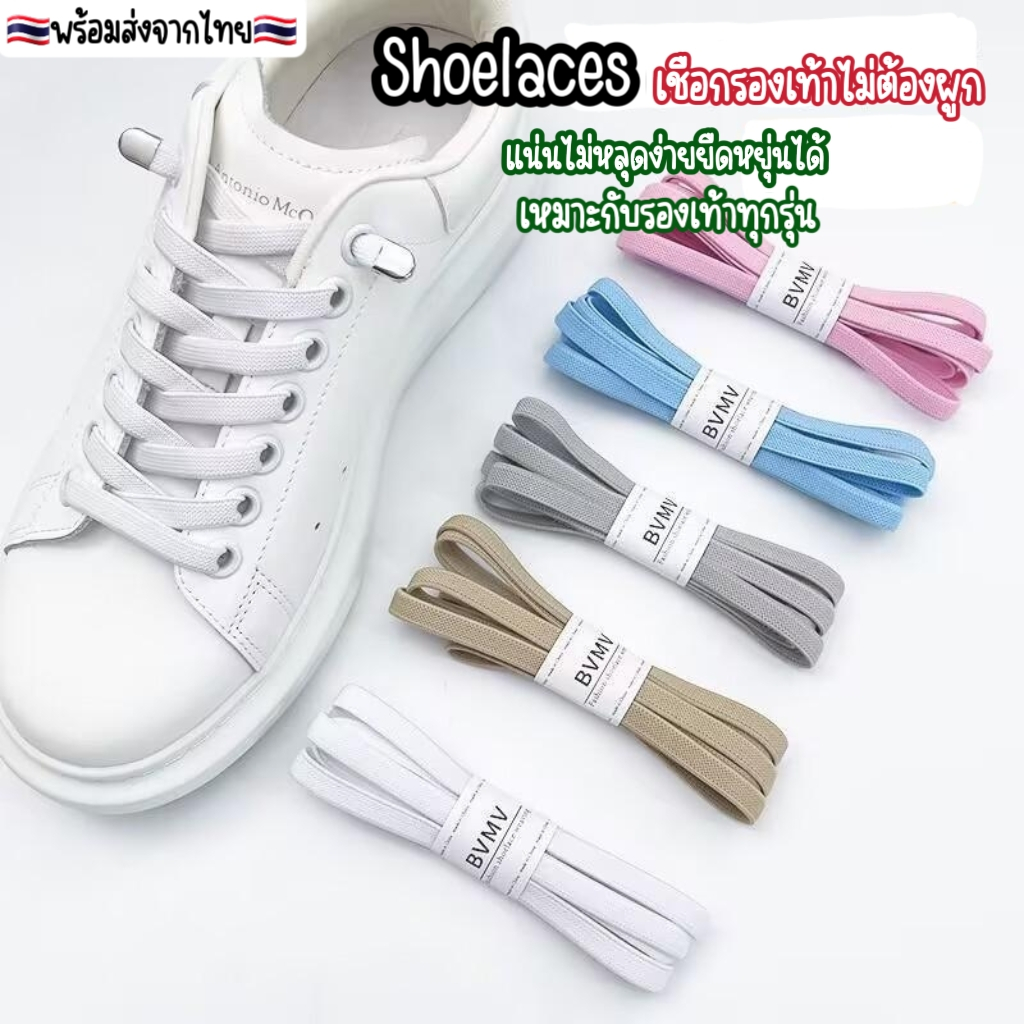 เชือกรองเท้าแบบไม่ต้องผูก(1คู่) สามารถยืดหยุ่นได้ทำให้แน่นกระชับเท้า หน้ากว้าง 8mm. พร้อมส่งจากไทย