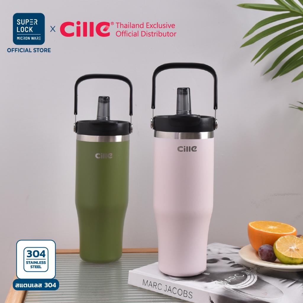 [รับประกัน 1 ปี] Cille Ceramic Mug แก้วสแตนเลส304 เคลือบเซรามิก เก็บร้อน-เย็น มีหูหิ้ว 1.2L 24198