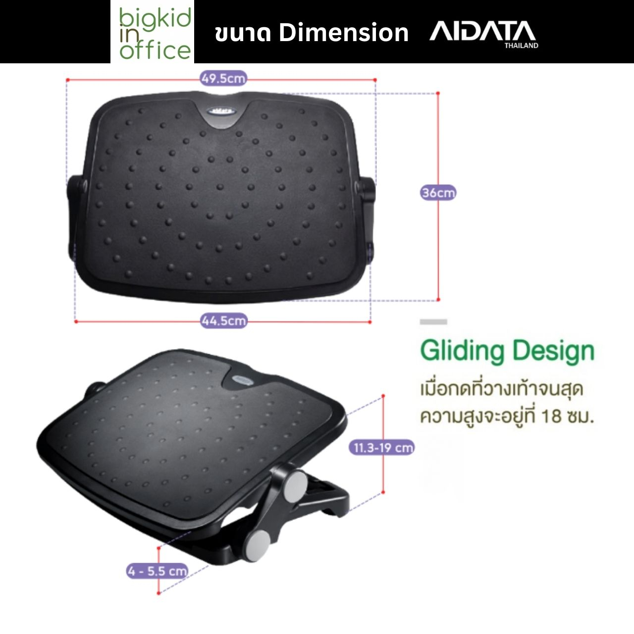 ที่วางเท้าใต้โต๊ะทำงาน ที่วางเท้าเพื่อสุขภาพ ที่พักเท้า สีดำ รหัสรุ่น FR006B