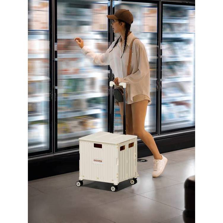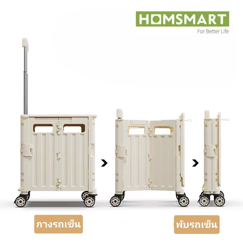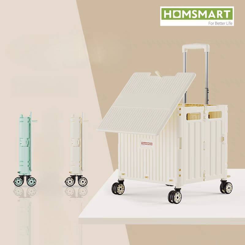 Homsmart รถเข็นพับได้ รุ่น D24 [ Big 80 L ] มีที่วางแก้ว🥛พับได้ ฝาสไลด์ติดกับรถเข็น พับได้ จุได้เยอะ ดีไซน์สวย ล้อลื่น