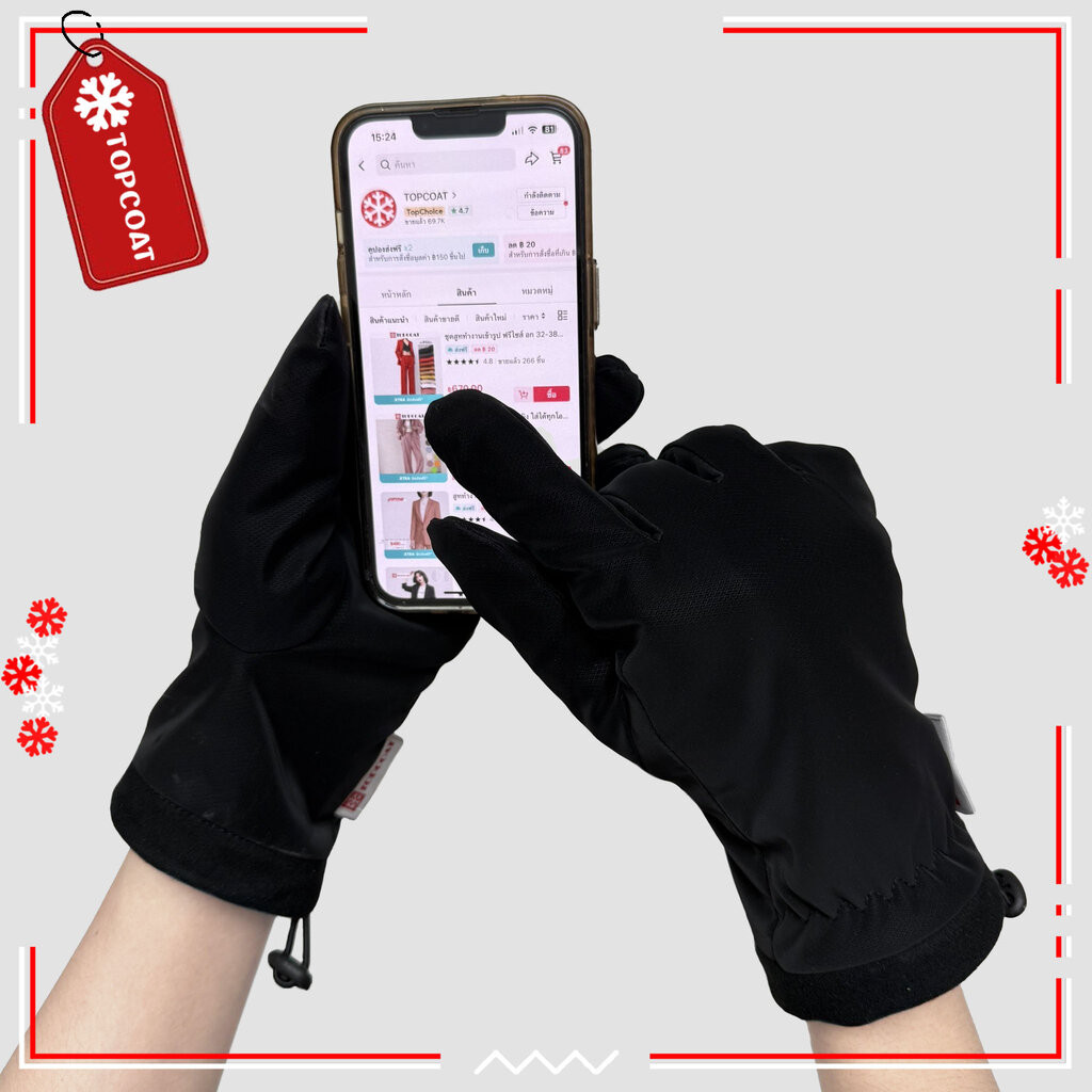 TOPCOAT ถุงมือกันหนาวใส่เล่นหิมะ กันน้ำกันเปียกได้ มีสายปรับระดับข้อมือ ทัชสกรีนได้ (1 คู่) Freesize