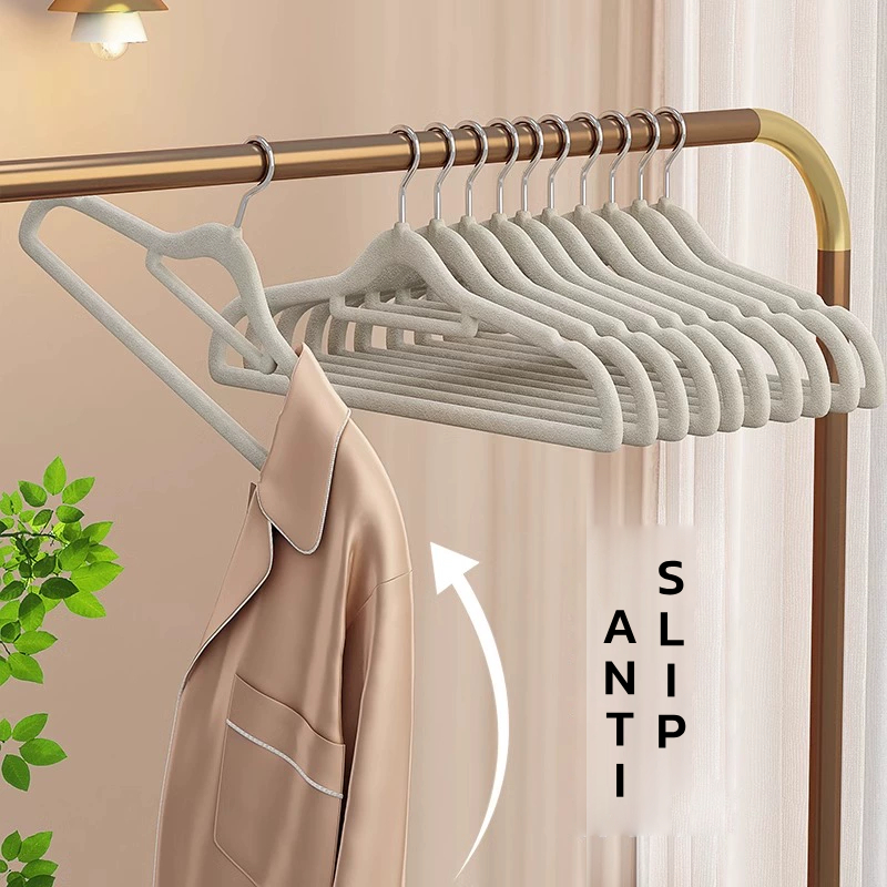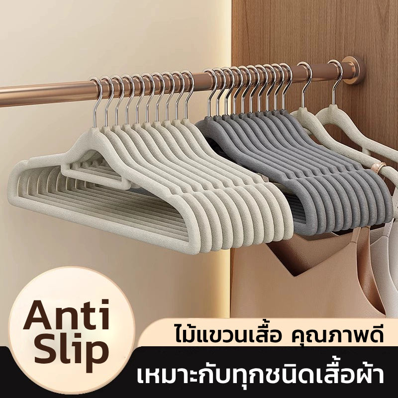 GRAREY ไม้แขวนเสื้อกำมะหยี่กันลื่น ป้องกันไหล่มุม ตะขอหมุนได้ 360 องศาคุณภาพดี แพ็ค 10 ชิ้น