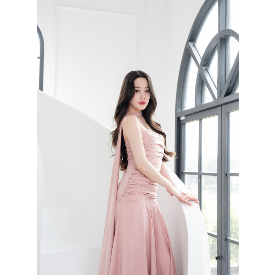 Pirunya - Long Dress 20 เดรสยาวออกงาน เกาะอก จับเดรป กระโปรงระบาย พร้อมผ้าคาดคอ
