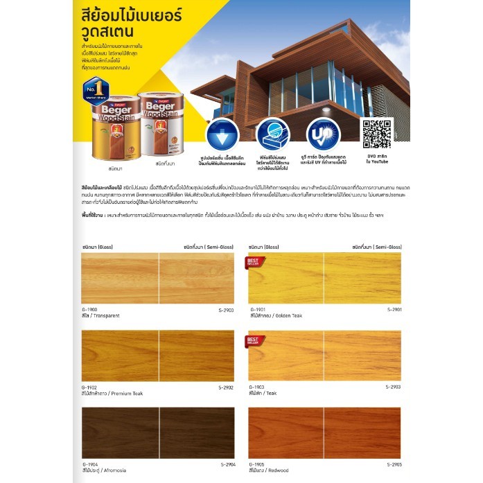 Beger WoodStain สีย้อมไม้ เงา ทาผนังภายในและภายนอก 1 แกลลอน สีทาผนังไม้ ผนังไม้ สีทาไม้