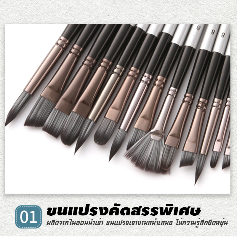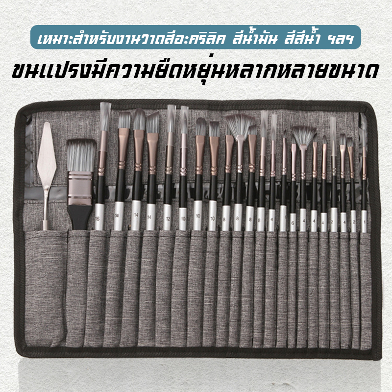 ชุดแปรงวาดภาพอะคริลิค ชุดพู่กันสีน้ำ 24 ชิ้น สีน้ำมัน สีน้ำ และกูอาช พร้อมผ้าห่อ พู่กัน