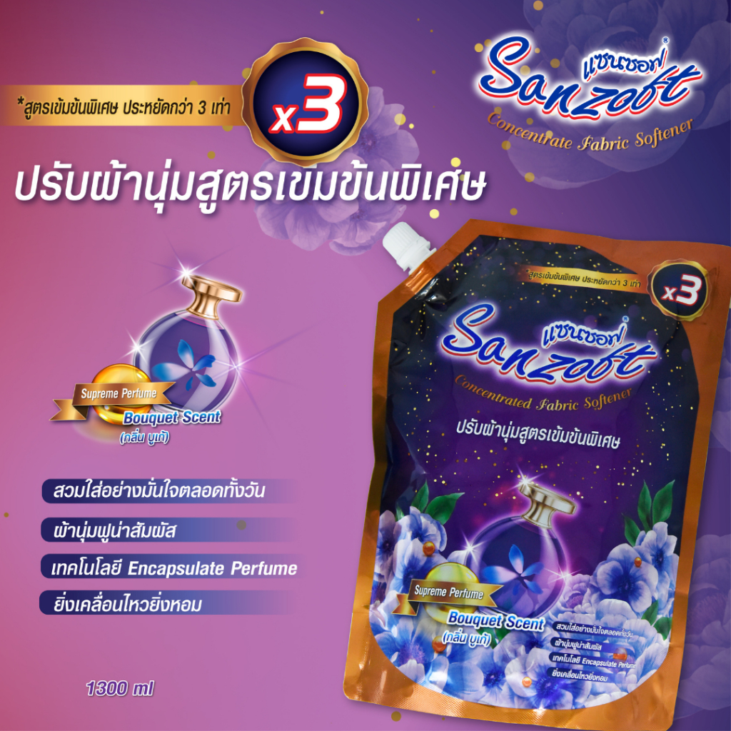 SANZOFT แซนซอฟ น้ำยาปรับผ้านุ่ม สูตรเข้มข้นพิเศษ 1300มล.