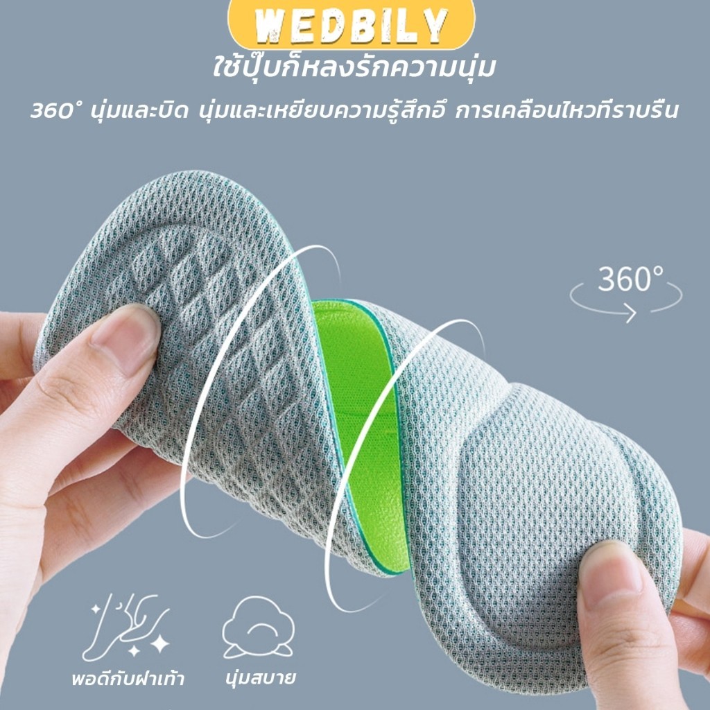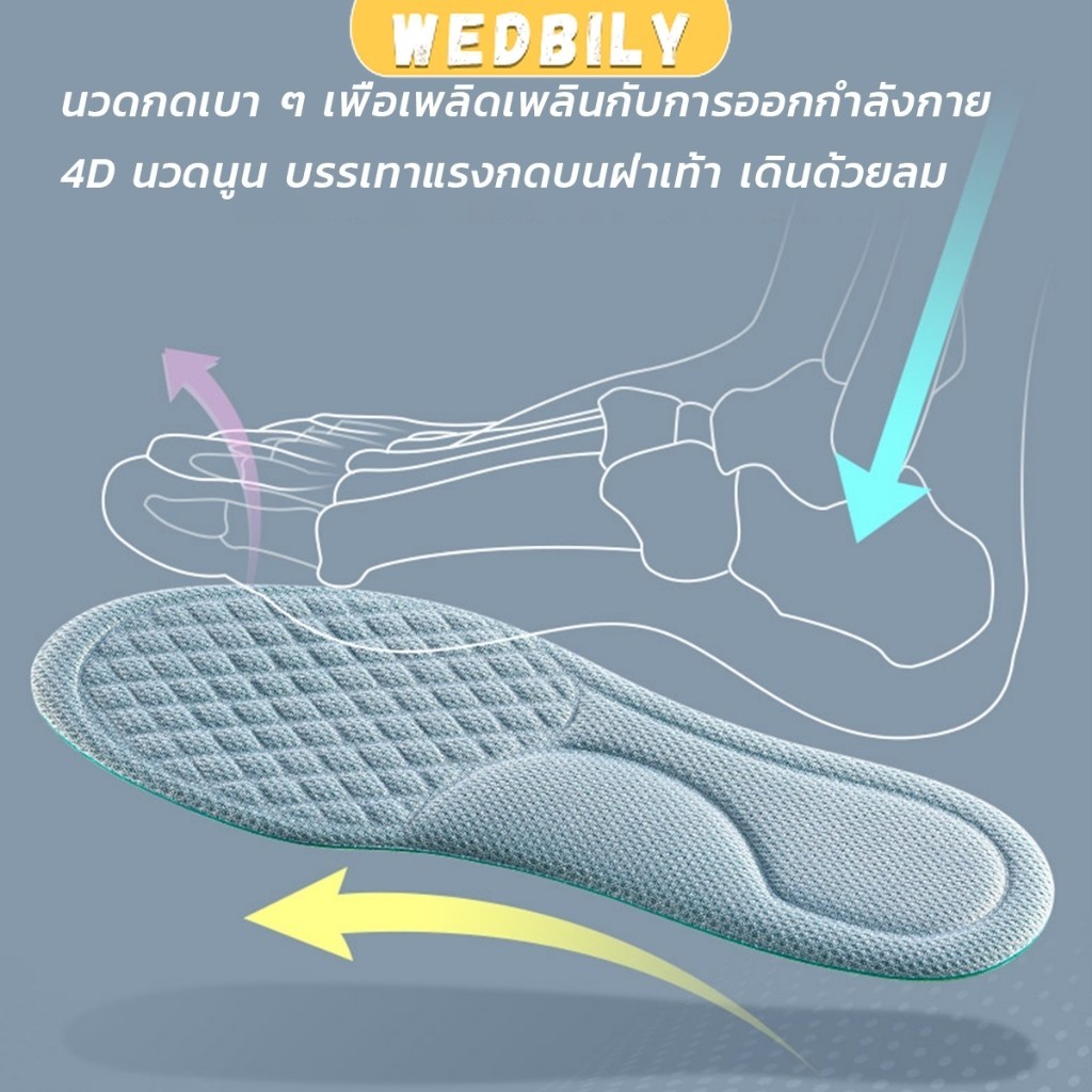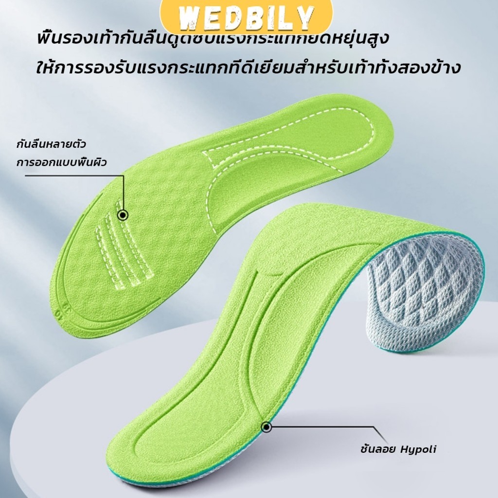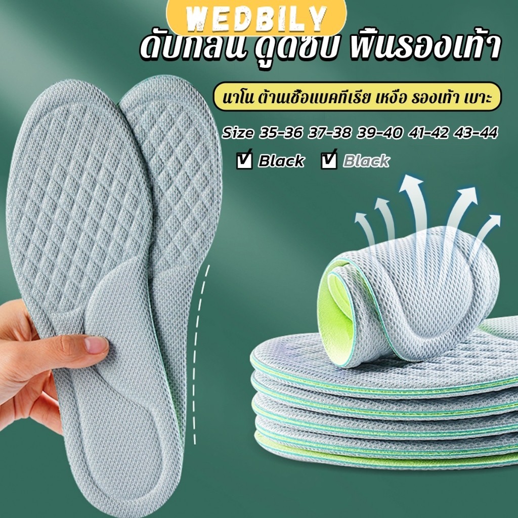 Wedbily พื้นรองเท้า ดับกลิ่น ดูดซับ นาโน ต้านเชื้อแบคทีเรีย เหงื่อ รองเท้า เบาะ พอดีกับฝ่าเท้า นุ่มสบาย insoles
