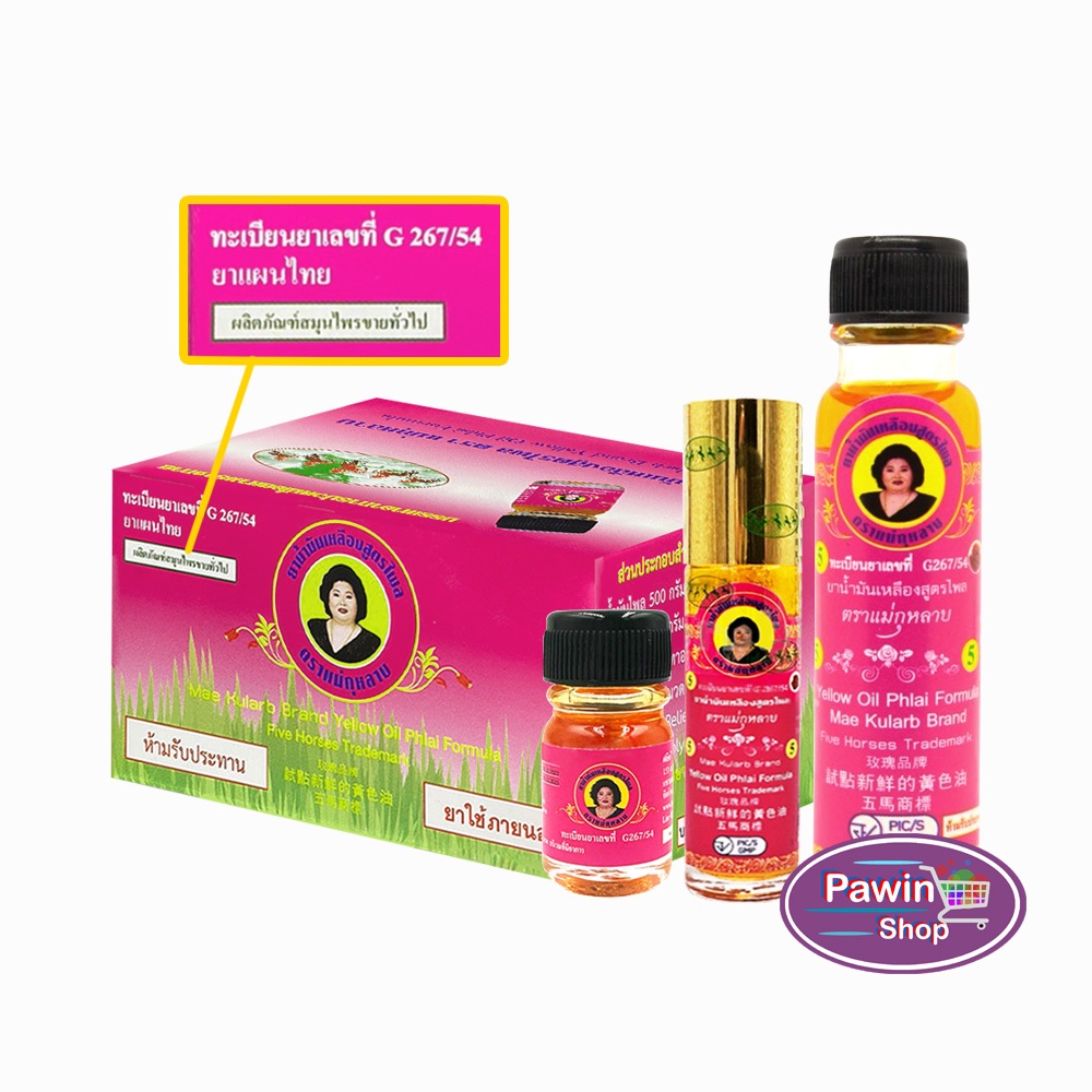 ยาน้ำมัน ตราแม่กุหลาบ 3,7,20มล[12ขวด]GG 82XX น้ำมันเขียว เสลดพังพอน/น้ำมันเหลือง ไพร/น้ำมันน้ำตาล เลียงผา/สีเขียวเบอร์5