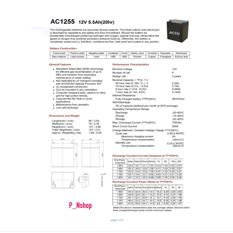 - ไม่ต้องดูแลรักษาตลอดอายุการใช้งาน (Sealed Lead Acid) สะดวกสบาย