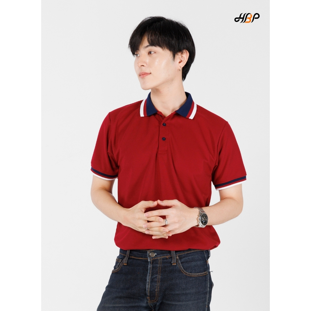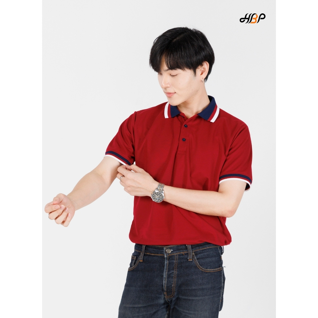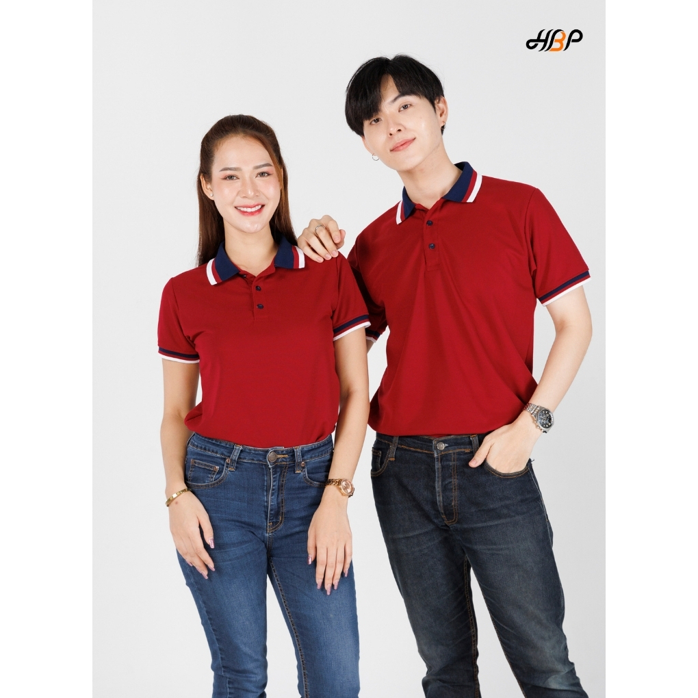 เสื้อโปโลสีเลือดหมูปกกรมขลิบขาวเลือดหมู แขนจั้ม ไม่มีกระเป๋า ไม่ยืดไม่ย้วย สีสด แม้ซักบ่อย ราคาสุดคุ้ม