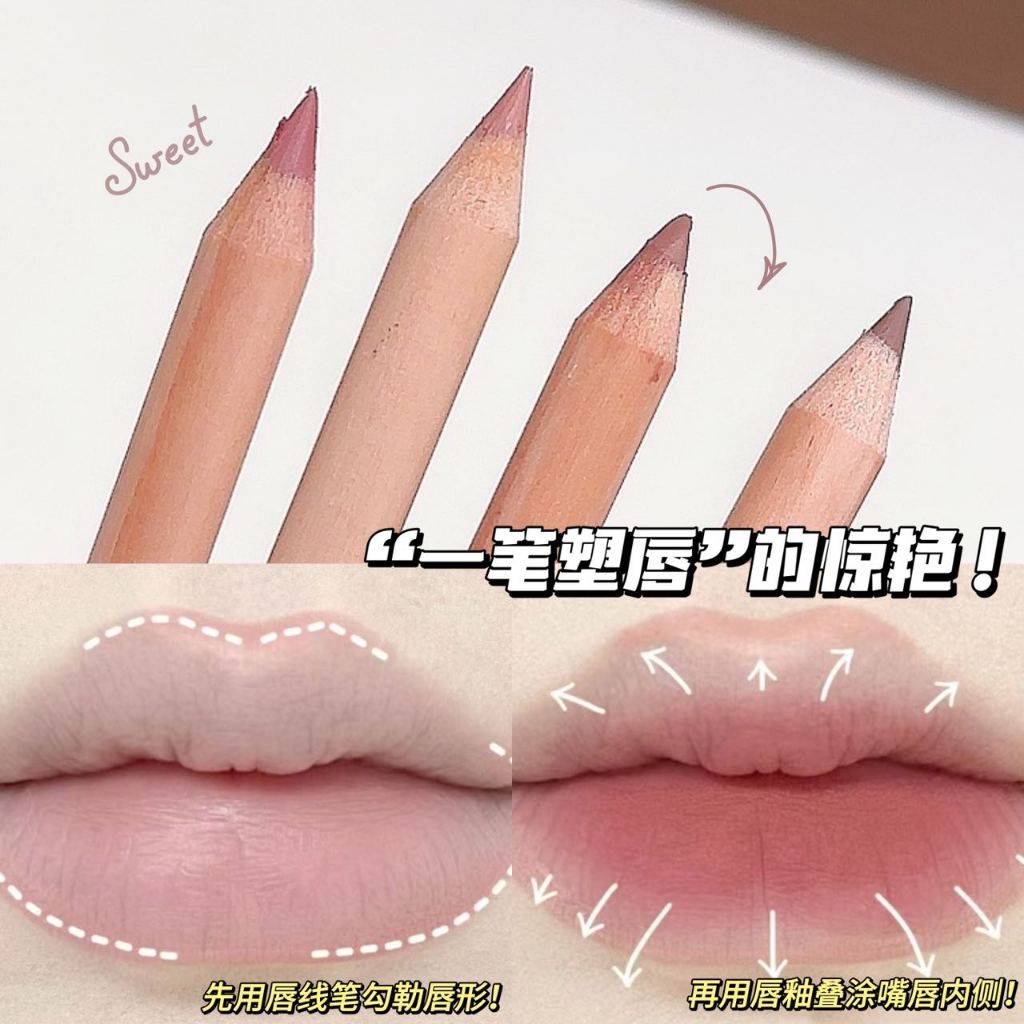SWEET MINT ไม้จับลิปไลเนอร์ดินสอ4สีกันน้ำธรรมชาติเคลือบเปลือยแต่งหน้า3D การ์ตูนริมฝีปาก