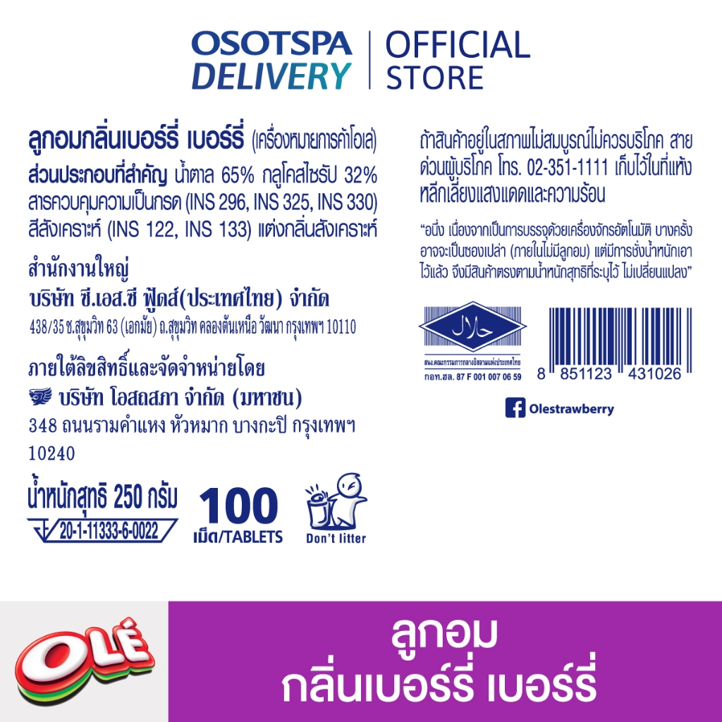 OLE โอเล่เบอร์รี่ เบอร์รี่ 100เม็ด 2.5ก (1 ซอง) / OLE Berry Berry 100 tabs 2.5g
