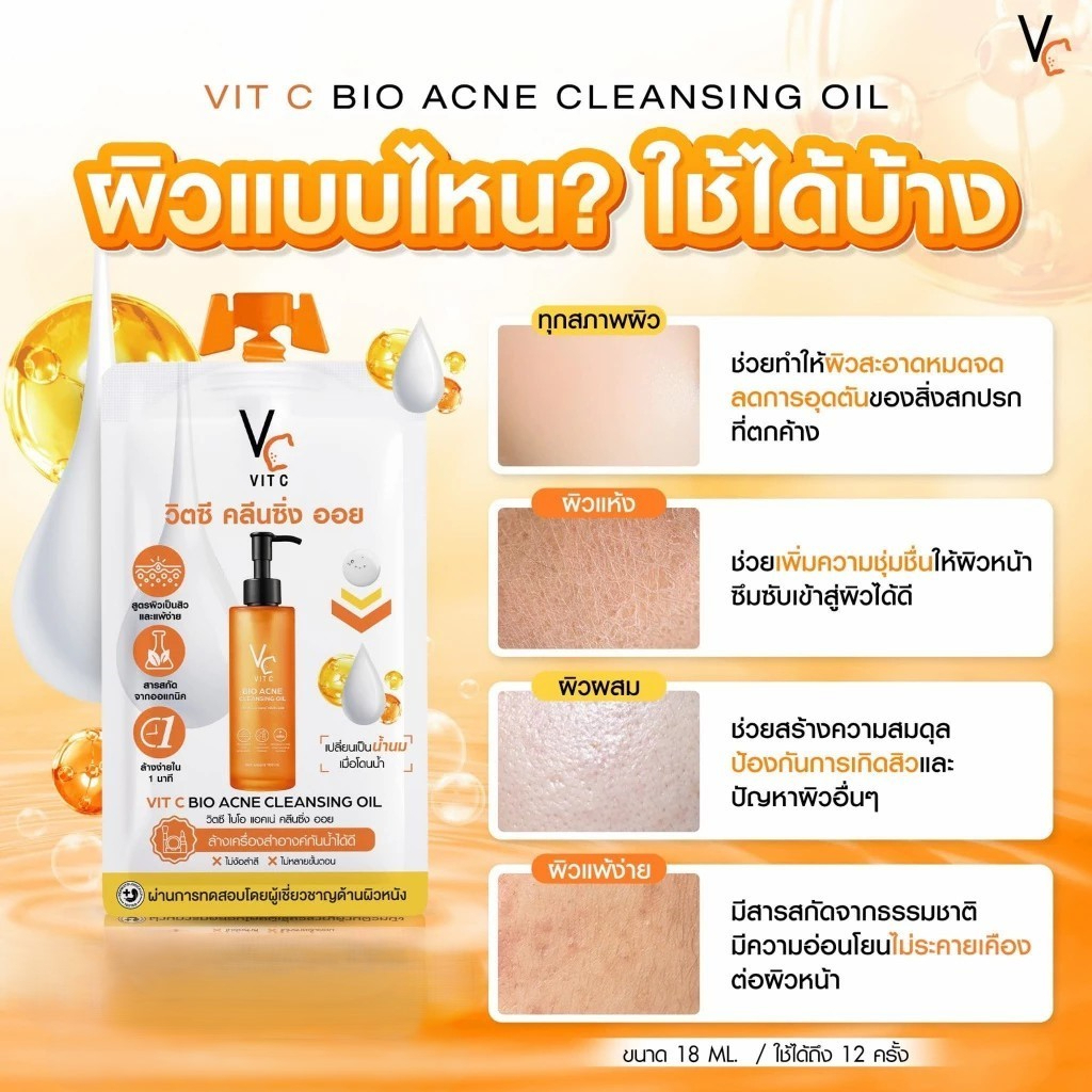 [กล่อง 6 ซอง] Ratcha Vit C Bio Acne Cleansing Oil [18 ml.] ทำความสะอาดผิว คลีนซิ่ง ออย