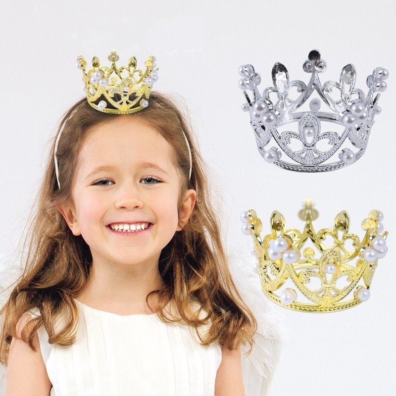 เครื่องประดับผม มงกุฎ ประดับไข่มุกคริสตัล ขนาดเล็ก สําหรับตกแต่งเค้กวันเกิด งานแต่งงาน จํานวน 1 ชิ้น