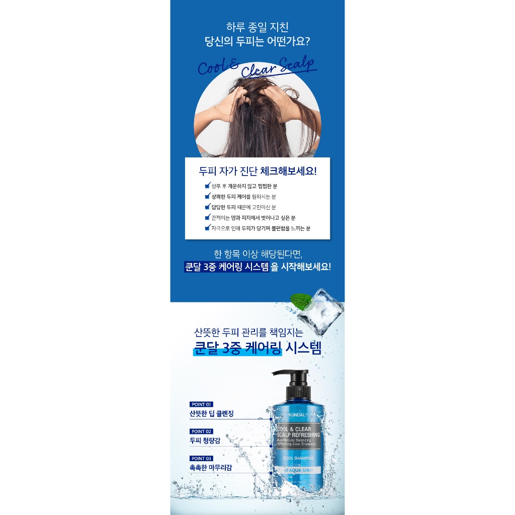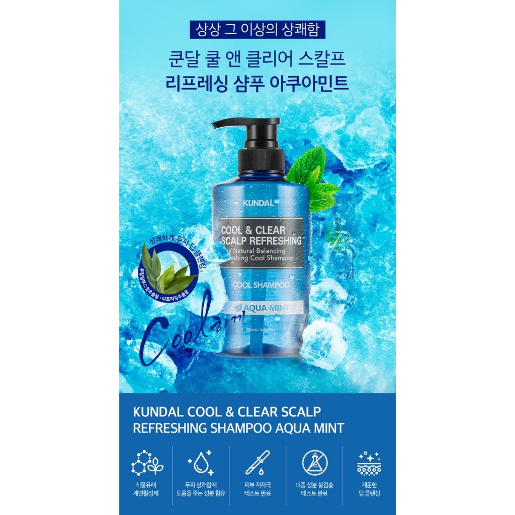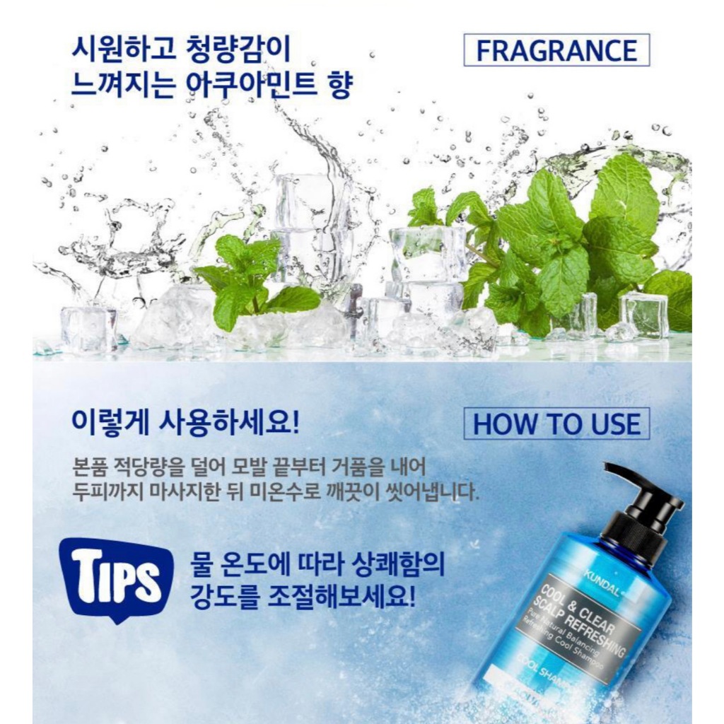 [ของแท้] 쿤달쿨샴푸쿨민트 Kundal Cool & Clear Scalp Refreshing Shampoo with Aqua Mint (แชมพู สูตรเย็น) 500ml