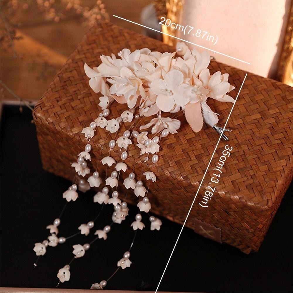 Just Wedding Headdress, Elegant Fairy เจ้าสาว Headwear, ประณีตเพิร์ลหรูหราพู่ดอกไม้ Barrettes เครื่องประดับผม