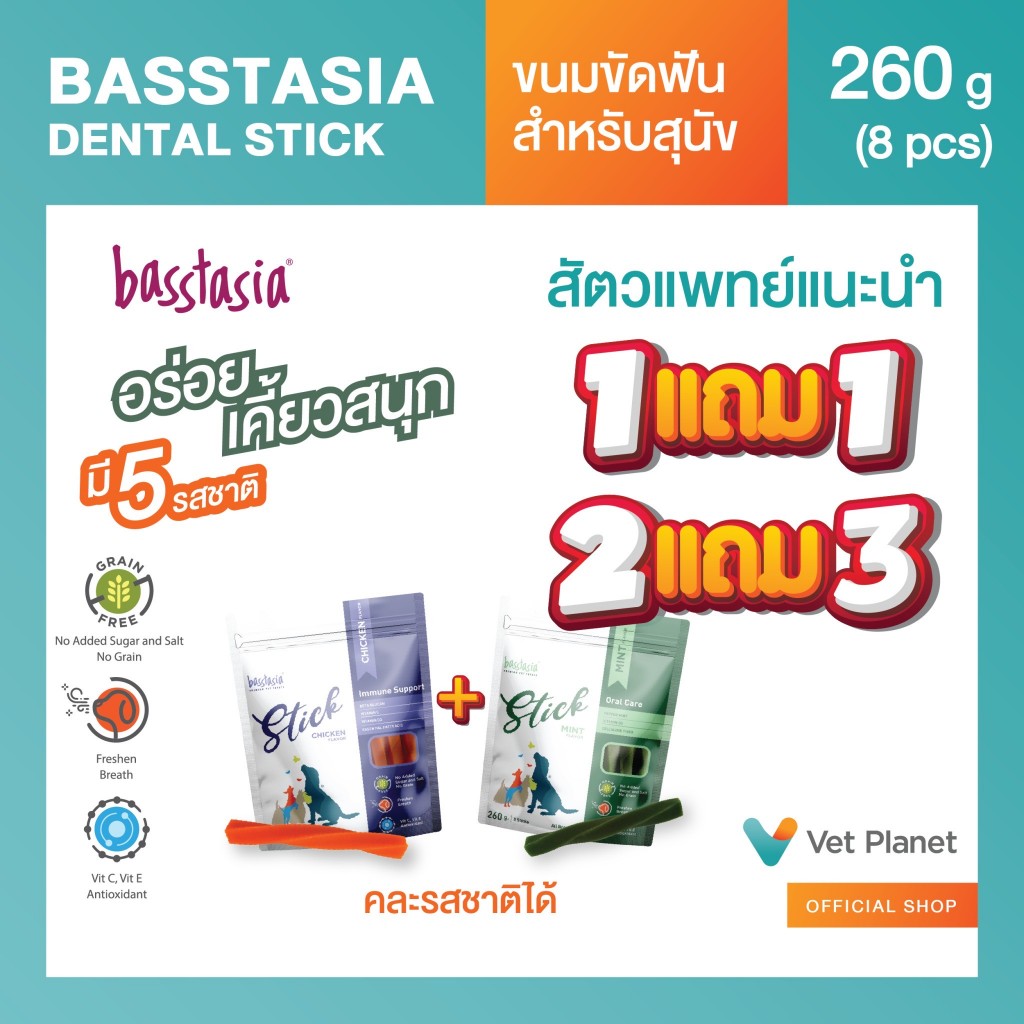 Basstasia Stick ขนมขัดฟันสาหรับสุนัข แถม Dental Stick มี 5 รส 5 ประโยชน์ ขนมขัดฟันสุนัข สินค้าคุณภาพ ขนาด 260 กรัม