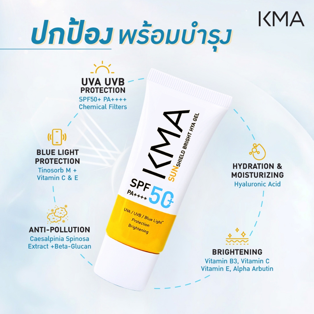 KMA กันแดด Sunshield Bright HYA Gel SPF 50+ PA++++ เนื้อเจลเบสน้ำ